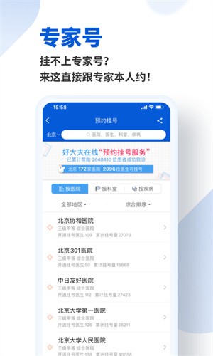 1、免费预约7317位专家的门诊:目前可以通过手机版直接领取加号凭证,预约功能即将开放,敬请期待。